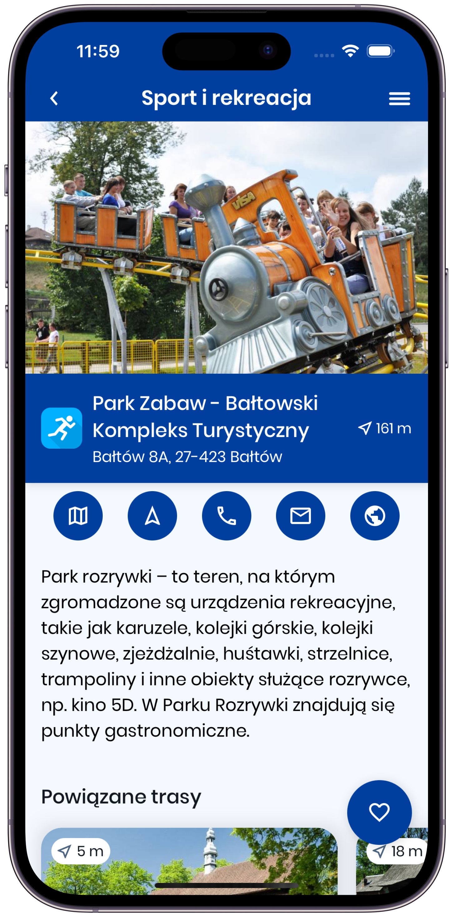 Aplikacja proponuje turystom także kilkadziesiąt tras rowerowych, o różnej długości i stopniu trudności - każdy znajdzie coś dla siebie! Zwiedzanie urokliwych krain jeszcze nigdy nie było tak przyjemne! Zachęcamy do zapoznania się z treściami aplikacji i wyruszenia na wycieczkę - interesujące nas trasy i obiekty można dodać do planera, aby zawsze mieć je pod ręką.